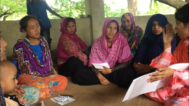このような状況を受けて、ピースウィンズ・ジャパン(PWJ)も診療や薬の処方だけでなく、啓発活動への注力を始めました。現在、キャンプ内の3か所とキャンプ周辺地域の2か所で、産前・産後検診、家族計画、成長モニタリングといった母子保健サービスの提供とともに、栄養・産前検診・妊娠中の注意点などの啓発活動を行っています。