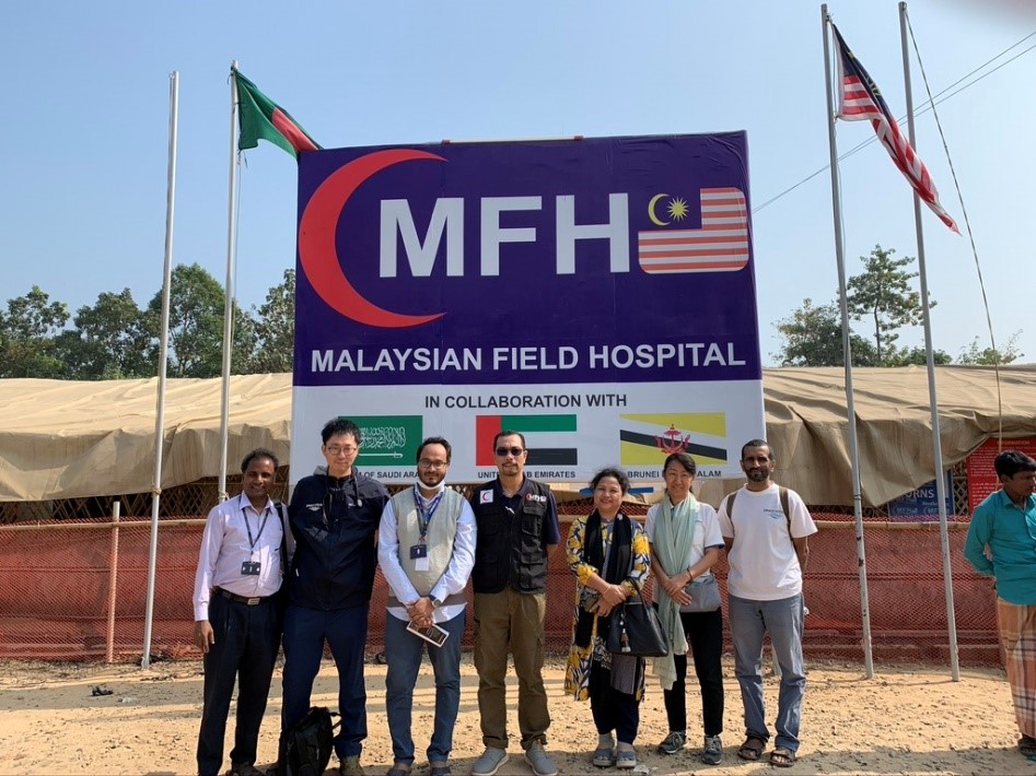 難民キャンプにある医療施設は3つに区分され、その中で最上位に区分される医療施設はフィールドホスピタルと呼ばれ、難民キャンプ内に4つあります。診療所では行える検査や治療も限られているため、必要な患者は別の医療施設へ紹介しています。月におよそ20名前後の患者が他の医療施設に紹介されているのが現状です。実際に見学してみると、マレーシアから約7人の医師がローテートで診療にきており、歯科、眼科があり、清潔部屋で手術(腹腔鏡手術)が行われており、ICUもテント内に設営されています。私達の診療所からも医師を連れていき、双方の情報交換を行うことができました。