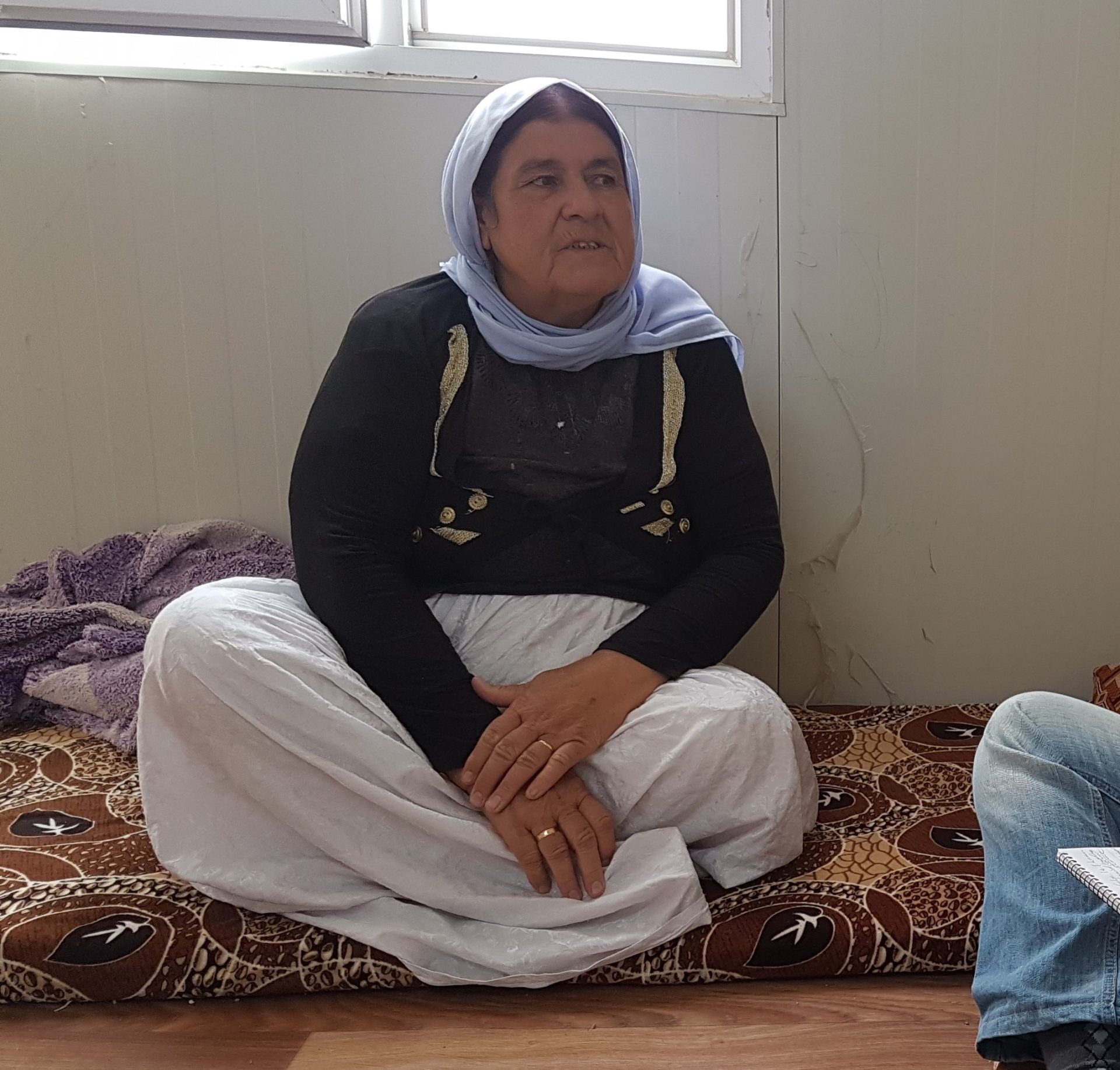 家族3人で避難している女性(32)も「イスラム国」から逃れるため、夫と足の不自由な息子とマムラシャン国内避難民キャンプにやってきました。現在はキャンプ内で生まれた娘も加わり、家族4人で暮らしています。「ここでシェルターに住むことができて、心地よく安心して暮らせています。守られていると感じられ、とてもありがたく嬉しいです。もし、あなたたち(PWJ)がこのような素晴らしいシェルターを与えてくれなかったら、家族全員で今この時を過ごせることはできなかったでしょう」