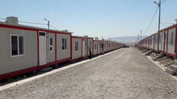 PWJは昨年8~9月、イラク北部ドホーク州のマムラシャン国内避難民キャンプで100戸のプレハブシェルターを設置しました。当時あふれていた国内避難民は全員入居することができました。プレハブシェルターには2部屋と小部屋があり、家族が多くてもゆったりと団らんできるスペースが確保されています。親戚と避難している世帯も多いため、キャンプでは住環境の狭さが問題になりがちですが、その点についても考慮されています。壁などでプライバシーも守られており、頑丈で暑さや寒さにも強いつくりになっています。
