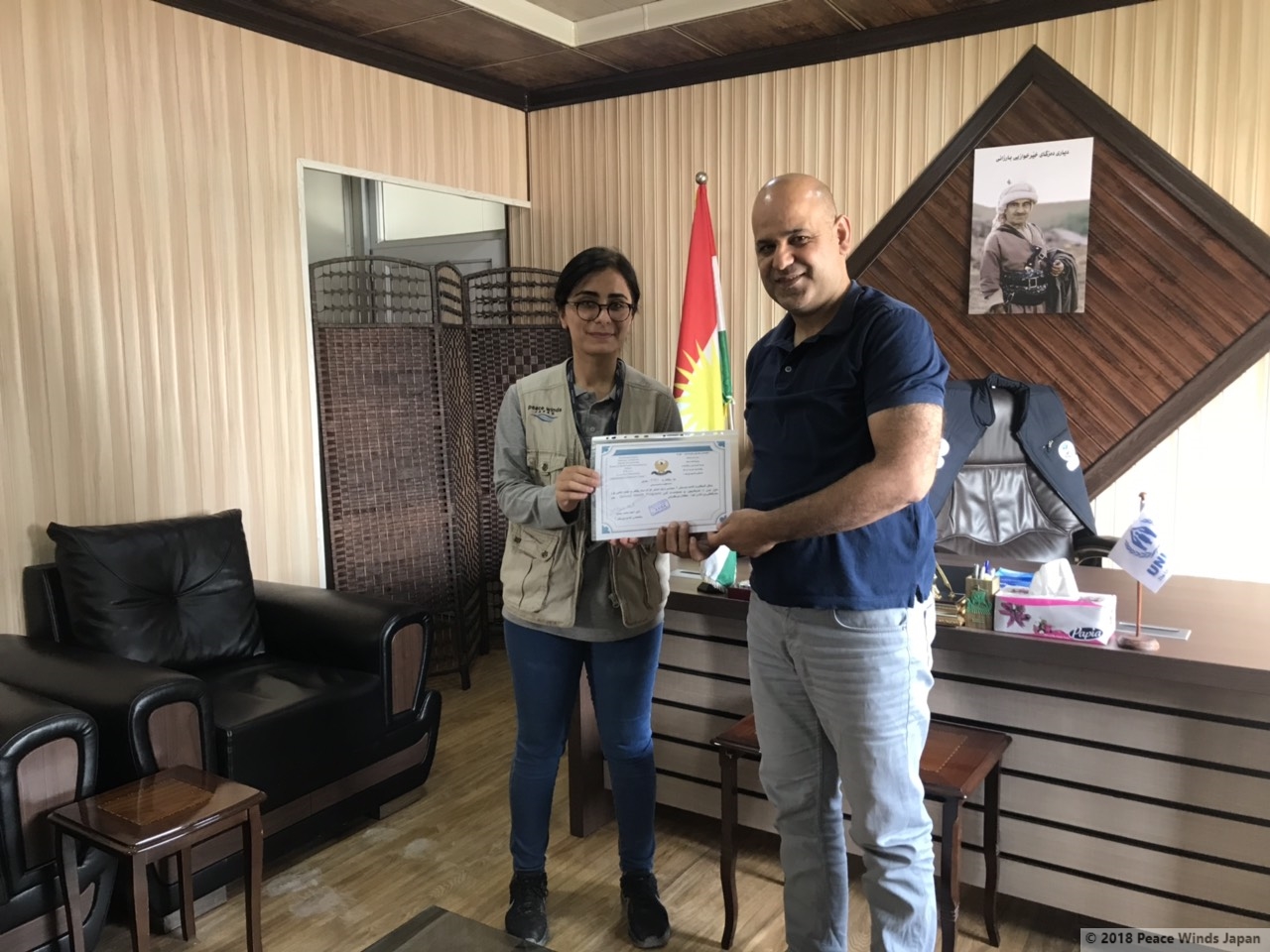 今回、当活動に対し、学校保健支援を実施した4つの国内避難民キャンプ(チャミシュコ、ベルセベ1、ベルセベ2、ダルカー)からそれぞれ感謝状をいただきました。