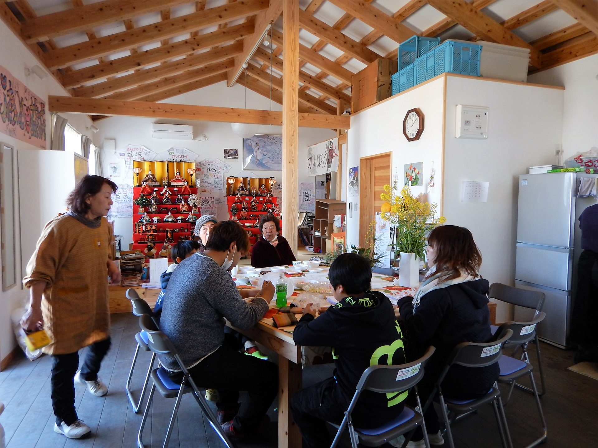 ピースウィンズ・ジャパン(PWJ)は2~3月、熊本県益城町のテクノ仮設団地と馬水東道仮設団地で、住民たちが企画したひなまつりイベントを支援しました。