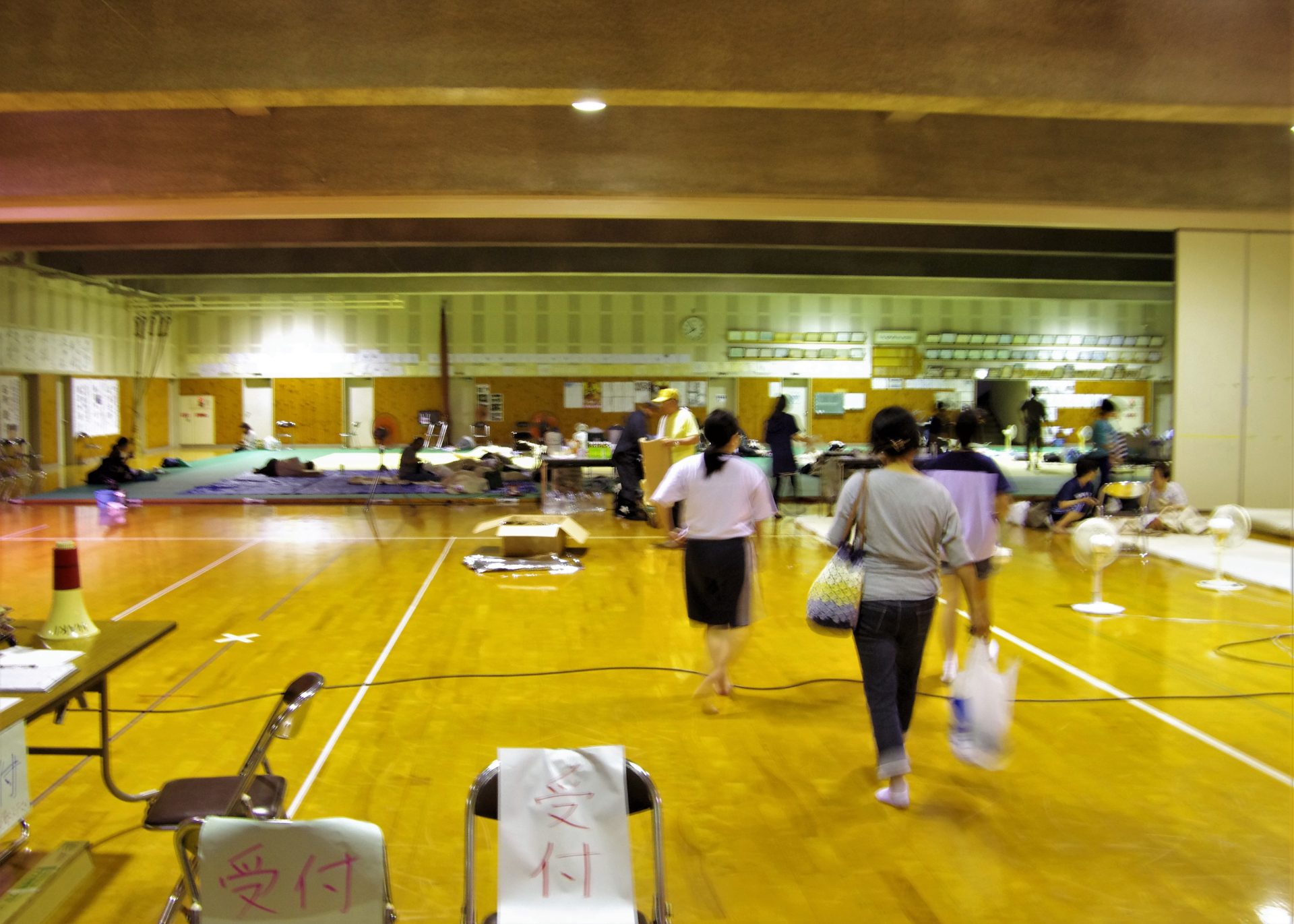 200人前後が身を寄せる、杷木中学校の体育館。朝倉市内では最大規模だ。一時孤立したり、着の身着のまま逃れてきたりした人たちも少なくない。いま彼らに何が求められているのか。過酷な環境を少しでも改善するため、PWJは6日夜から連日ここで支援物資のニーズを調査。被災者と向き合う中で、食料や水などが早い段階で届けられている一方で、体を休めるマットレスや着替えなどの需要が高いことが見えてきた。