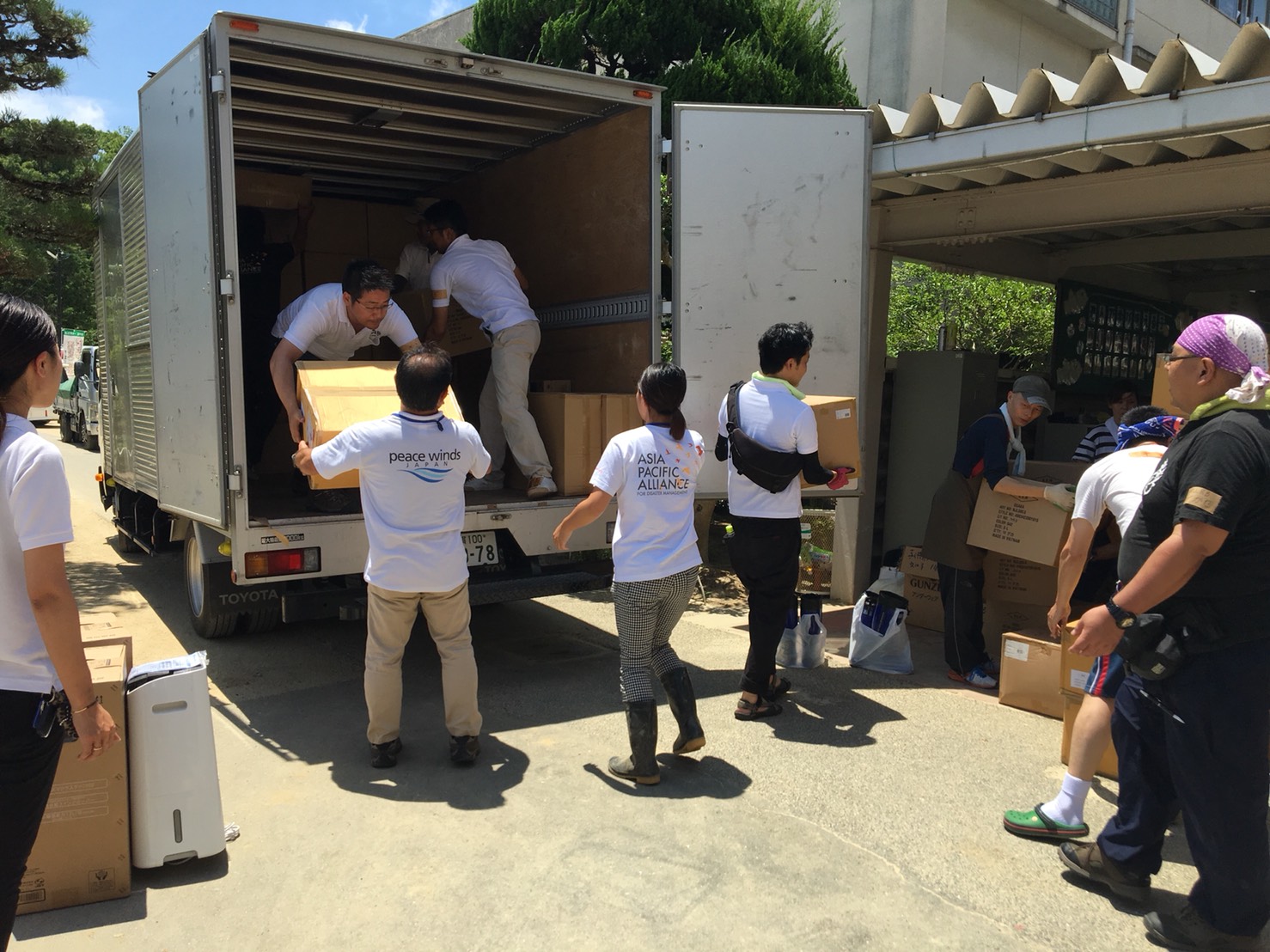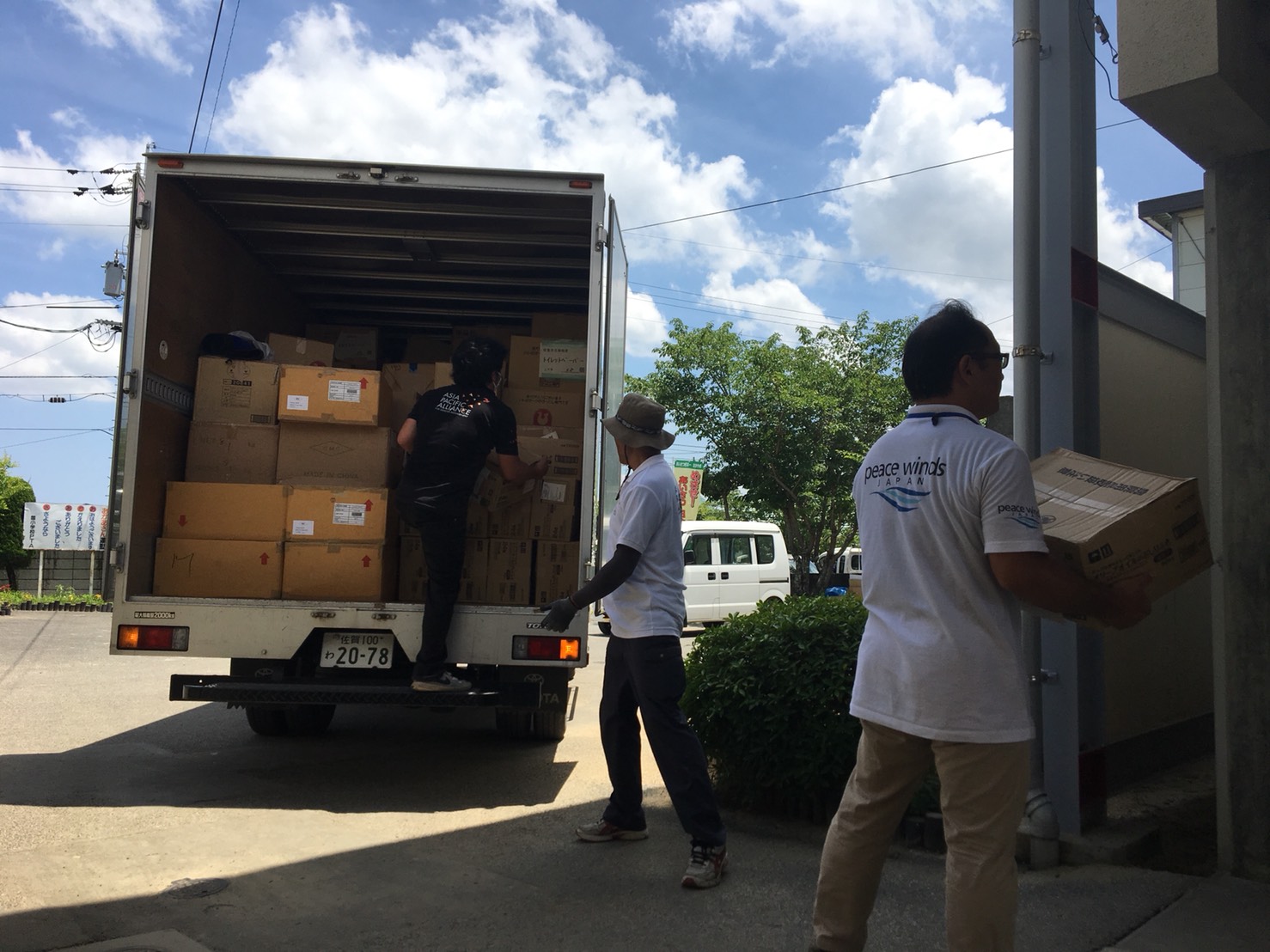 ピースウィンズ・ジャパンは本日も倉敷市真備町で主に物資搬送の支援を継続しています。
