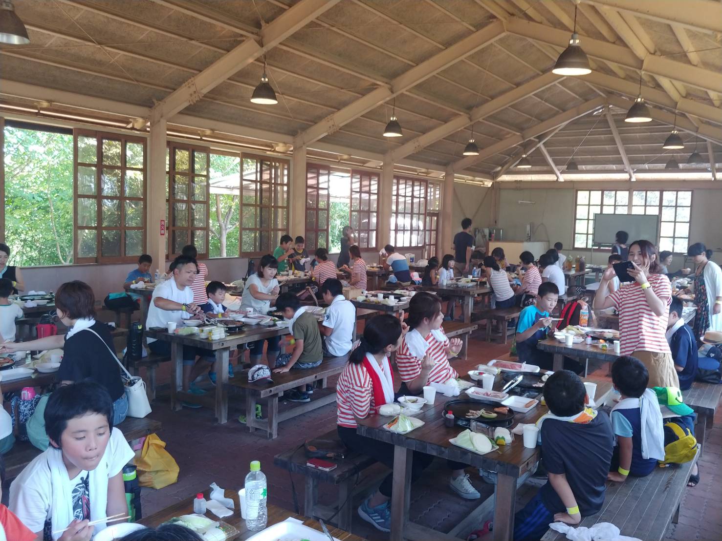 お昼は、バーベキュー。みんなで協力しながらお肉を焼き、ワイワイ楽しく食べました。