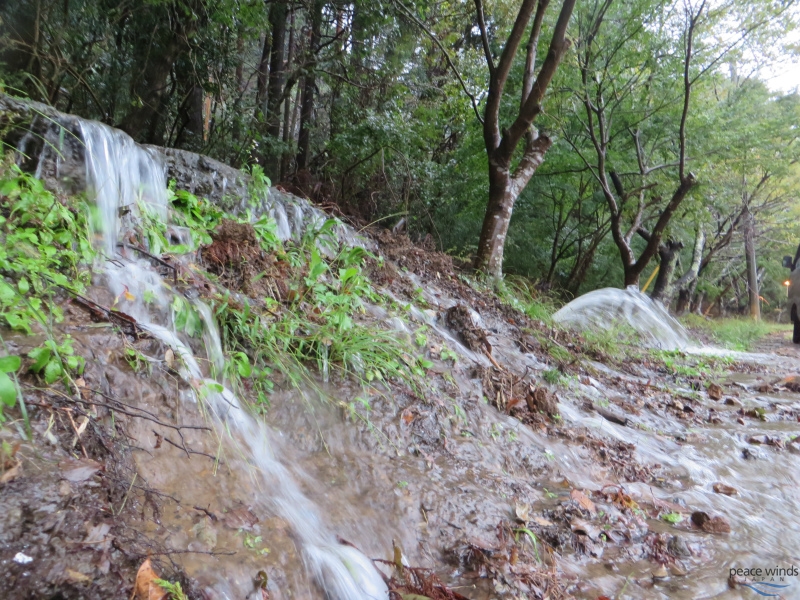 10月25日午前、千葉県で記録的短時間大雨情報が報告されました。ピースウィンズ・ジャパン(PWJ)が、台風15号の被害の緊急支援を展開している千葉県鋸南町においても、土砂災害警戒のため避難勧告が発令されました。