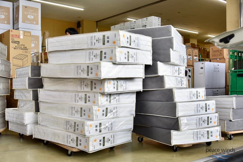 本日は、避難所2か所で肌着や飲み物を中心に配布しました。また避難所で寝泊まりしている人に負担がかからないように、マットレスなどを配布しました。