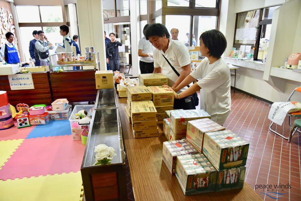 《避難所で支援物資を配布》