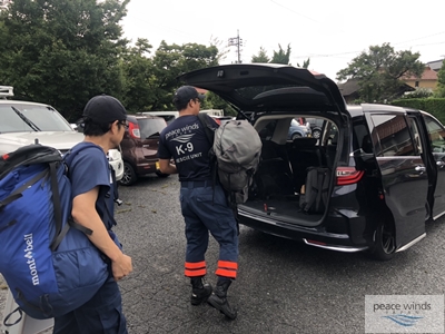 九州北部の記録的豪雨で広範囲にわたり被害が出ている被災地支援のために、ピースウィンズ・ジャパンは昨日の調査員派遣に続き、本日8月29日に医師とレスキューチームおよび救助犬2頭(ハルク・らいぞう)を派遣しました。