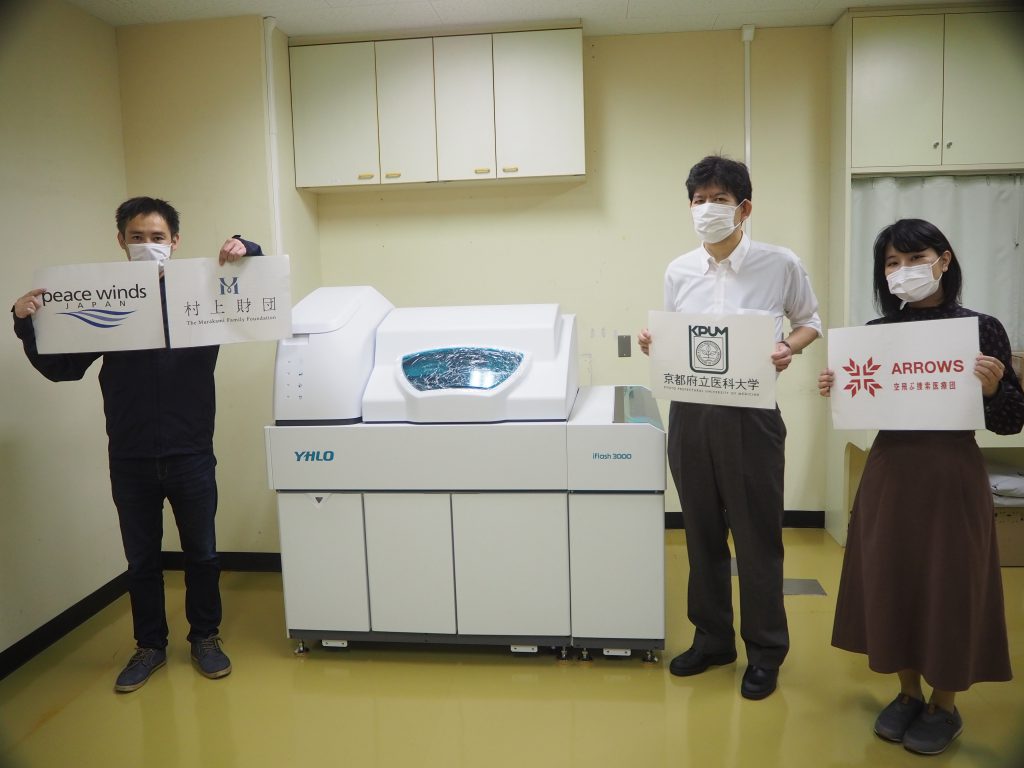 ピースウィンズ・ジャパンが運営する「空飛ぶ捜索医療団ARROWS(アローズ)」は、新型コロナウイルスの抗体検査に取り組む、京都府公立大学法人京都府立医科大学に、抗体検査器と測定試薬一式を寄贈します。この寄贈にかかる費用全額1,000万円は、村上財団による寄付により賄われました。