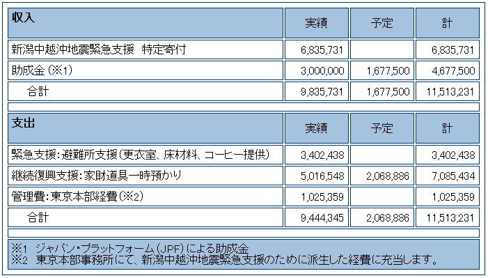■新潟中越沖地震緊急支援 収支報告(2007.7.16~2007.10.31)