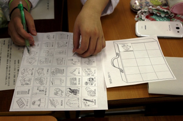 紛争が起き、今すぐ国外へ避難しなければならないという設定で、8つのグループに分かれた生徒たちは、何をカバンに詰めて持っていくか、限られた時間で判断しなければなりませんでした。