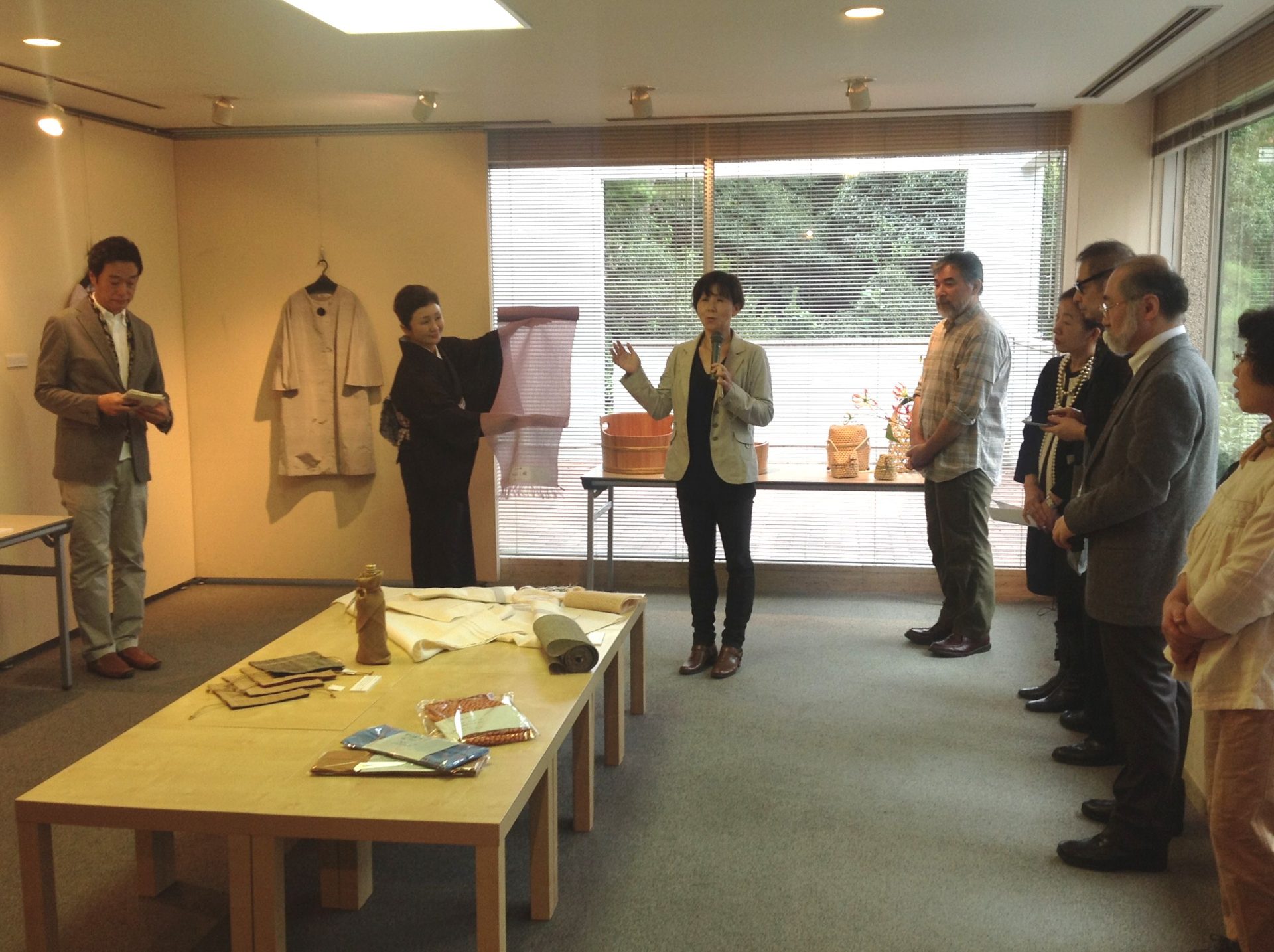 震災と原発事故で、大きな痛手を受けた福島県からは、奥会津昭和村振興公社で「からむし織」に携わる本名民子さんが、参加しました。会津地方の同村に600年前から伝わる「からむし織」。優れた吸湿性や速乾性のある原料のからむし(イラクサ科の植物)は、最高級の織物の材料と評されています。同村出身の本名さんは、着物の需要が少なくなった現代の活用のため、肌にふれ、体にまとって気持ちのよい素材の寝具としてからむし織の作品を手がけました。