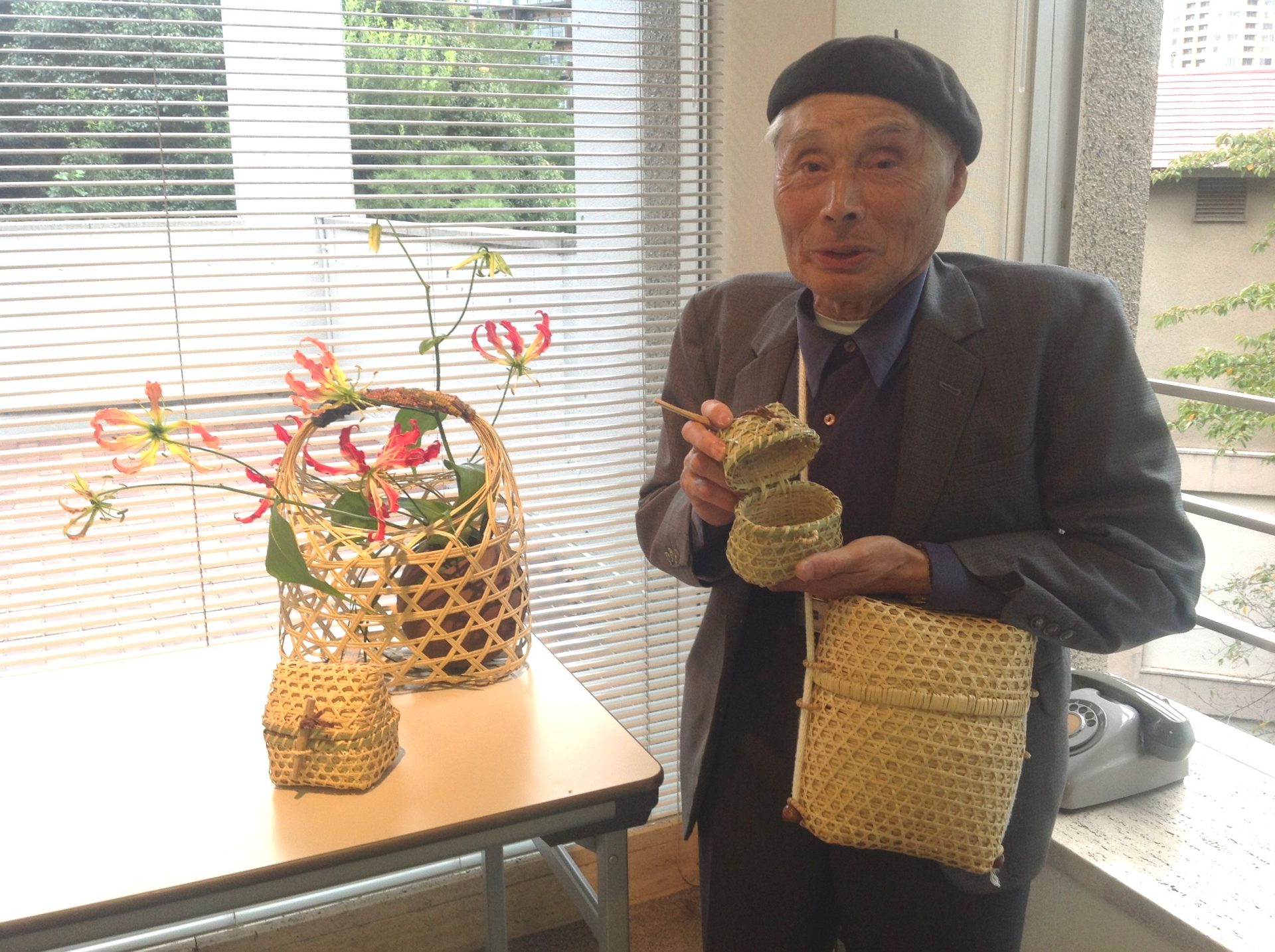 と、発表会冒頭の挨拶で会場を沸かせたのは、まもなく80歳を迎える、岩手県二戸市の鳥越細工職人、泉山正男さん。25歳の時から竹細工の製作に従事し、指導者としても匠の技の普及にとりくんできたそうです。
