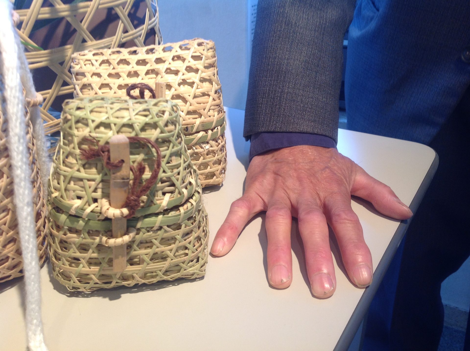▲半世紀以上もの間、竹細工に従事している“職人の手”