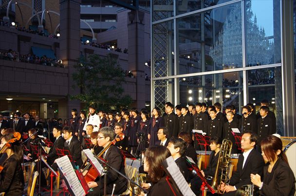 写真右:バカラのシャンデリア点灯式に気仙沼の子供たちを招待(2011年11月)