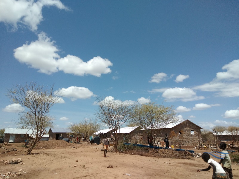 歩いて約3分の距離にあるオフィスに向かいます。トゥルカナ郡は、半乾燥地帯で緑が少なく、朝晩は涼しいですが、日中はとても暑く、焼き付けるような日差しが特徴の地域です。これくらいの時間から暑くなっていきます。