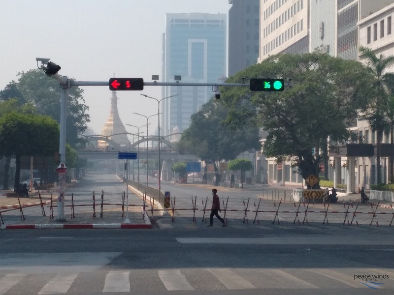 ヤンゴン市内の様子。デモの様子や救護時の様子は関係者への安全上の配慮からここでは掲載できません
