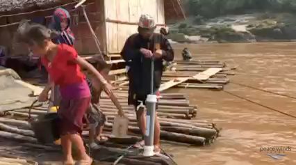 川で浄水器を使用し水を汲んでいる様子(写真提供:Saw Thay Poe)