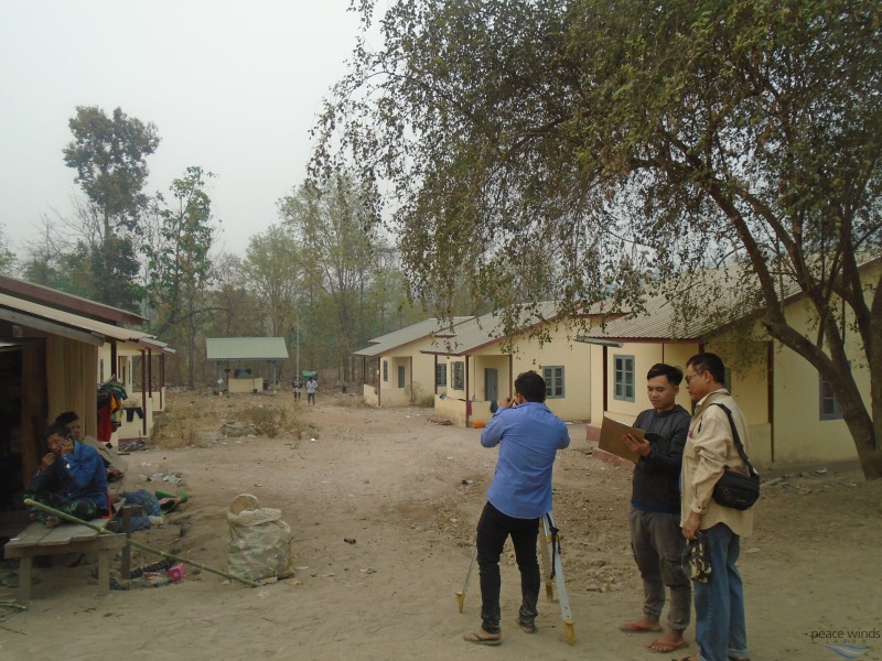 配水管敷設のため村内を測量
