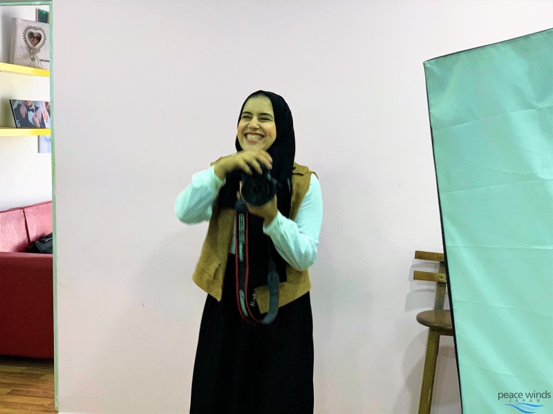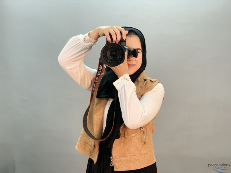 ディマは22歳の女性で、12人の大家族のひとりとしてガザ地区南部のラファで生まれ育ちました。2019年9月、彼女は、ラファにてピースウィンズ・ジャパンが支援するコミュニティ職業技術訓練センターを卒業し、今は写真スタジオで、デザイナー、フォトグラファー兼編集者として働いています。