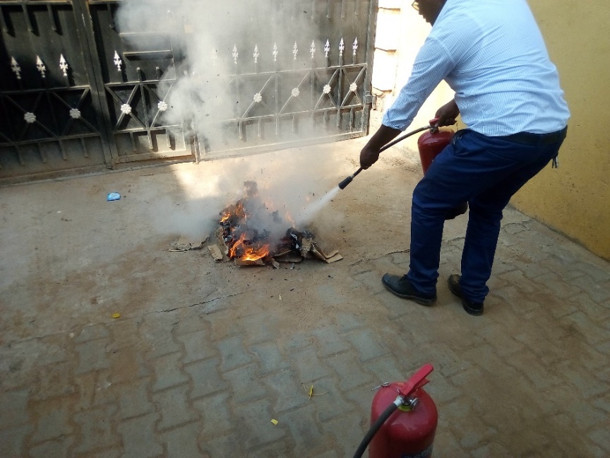 先日、PWJジュバ事務所で、消火訓練が実施されました。内容は、火災の原因から消火器の種類、そして消火器の使い方の説明でした。実は、何人かの現地スタッフにとっては、人生で初めての消火訓練です。そのためか、インストラクターの話を一生懸命に聞く様子が伺えました。