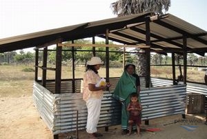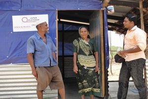 こうした悪条件を乗り越え、帰還民の方々は故郷で再定住できる喜びに溢れていました。仮設住宅建設のデモンストレーション(実演)先となった寡婦のサムディーンさんは「これが完成したら生まれ育った土地で安心して住めるようになるわ。これまではカジャンに住んでいたから孫達も泊まることができなかったけど、これで心置き無く孫を泊めることができるようになるわ。」と嬉しそうに話していました。
