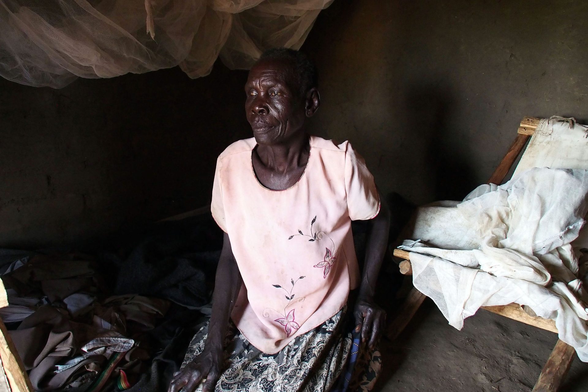 ビディビディ難民居住区に身を寄せているClementinaさん(年齢不詳、推定65~70歳の女性)は、2016年9月に南スーダンのセントラル・エクアトリアから夫と息子家族と避難してきたそうです。現在の生活状況について、こう話します。「夫は病気のため近くのヘルス・センターに入院しています。私自身も高齢で足が弱く、自分たちでは何もできません。困ったときは息子家族が手伝ってくれるのでとても助かりますが、彼は今仕事に就いていないので、彼から経済的な支援を受けることはできません」