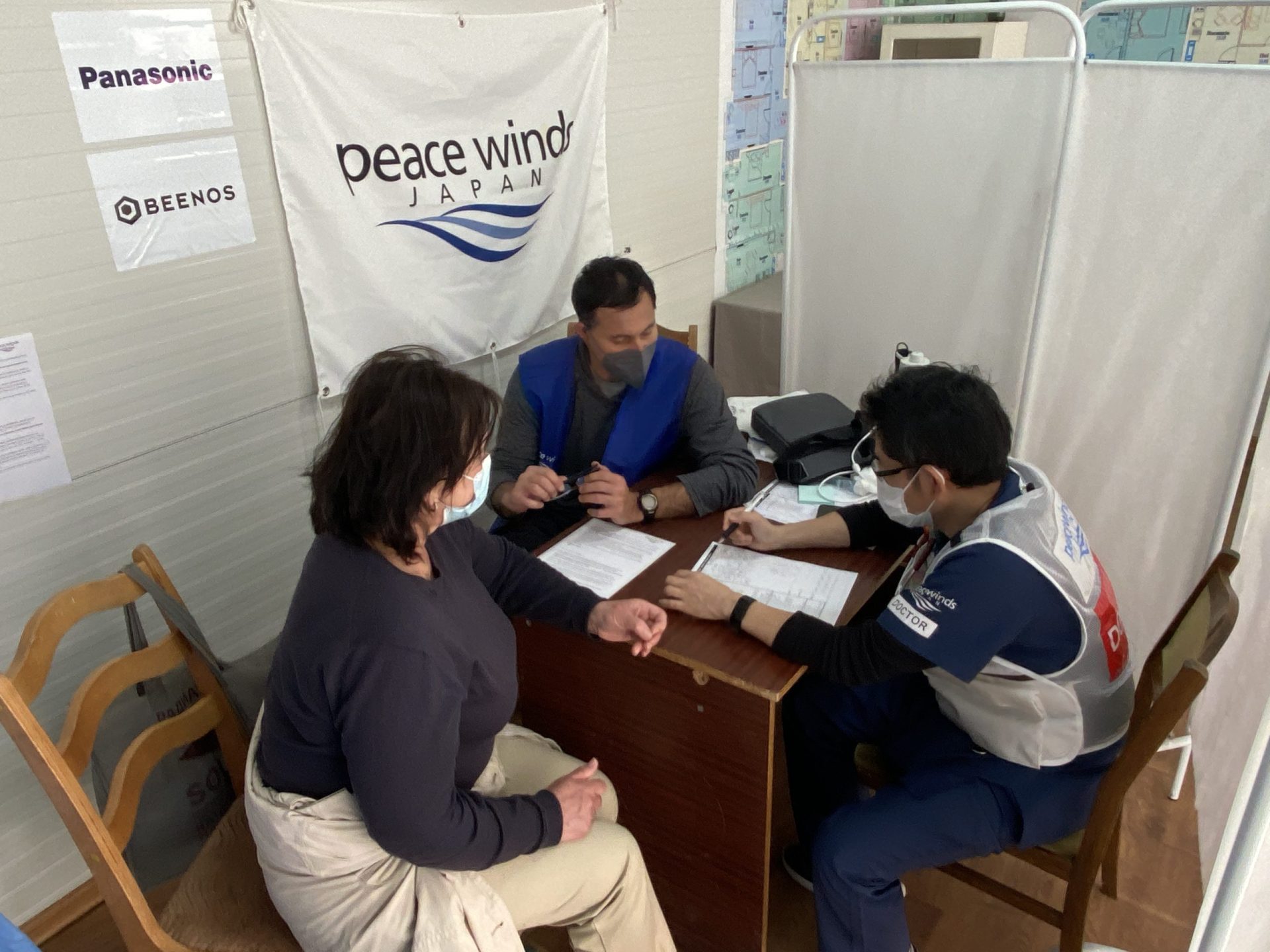 ピースウィンズ・ジャパンは、3月末に医師と看護師をウクライナから避難民が流入するモルドバに派遣し、避難所などで医療ニーズの調査を行ってきました。このたびモルドバ保健省から医療行為の許可を受け、4月7日にウクライナ避難民向けの食品・日用品の配布所の前に仮設診療所(medical point)を開設し、診療を開始しました。