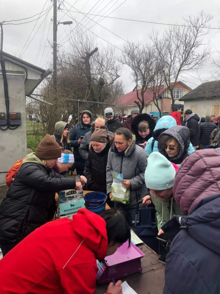 ウクライナ国内でペットおよびペット同伴家族の緊急支援を開始しているピースウィンズ・ジャパンの提携会社、COLLAR社のスタッフは、2000㎏(2トン)のペットフードなどを積載し再びチェルニヒフへ入りました。戦前、チェルニヒフ市は29万人の人が暮らす街でした。いまだチェルニヒフ市内にはおよそ8万人~9万5千人が、そこに留まっています。提携会社によると留まっている理由はそれぞれですが、その3人に1人がペットと暮らしているといわれています。ペットフードを配布場所に届けると、多くの人たちがペットフードを取りに来られます。犬だけでなく、猫やうさぎなどのフードの需要もあります。移動に必要なケージも要望があり届けられています。