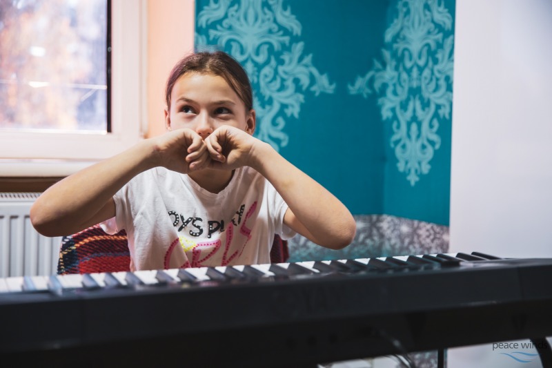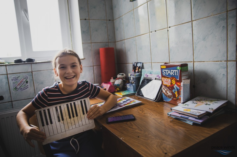 長女ターニャちゃんの机の上に目をやると、そこには紙に書かれたピアノが。お母さんに聞くと「ターニャはミュージシャンなの。ピアノが好きだから。今も練習したいのだけど、ここにはピアノはないから」と。「だから今はこれが君のピアノなの?」とターニャちゃんに聞くと、彼女は少し戸惑いながら恥ずかしそうにはにかみました。きっと本当は本物のピアノで練習したいのだけど、今はこんな紙のピアノしかないから恥ずかしかったのかもしれません。