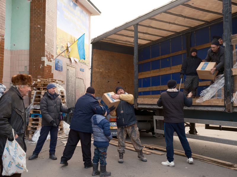 北東部ハルキウ州のロシア国境に近い町では、ロシア軍から解放されて3ヵ月が経った後も、電気、ガス、水道など生活に欠かせないサービスは断たれたままでした。戦闘は収まっても、平和はひとりでにやってきません。代わりにきたのは零下10度を下回る冬。町の市民ホールでは、占領を生き延びた住民が支援物資を受け取りに集まっていました。親ロシア派だった市長は逃亡し、行政が機能しない中、ライフラインとなっていたのは地元の市民団体でした。「占領下、砲撃の最中も支援物資を車で町に運び込み、避難する市民を市外へと送り出していました」と、団体のメンバーであり住民のナディア・ノビツカさんの言葉が印象に残っています。