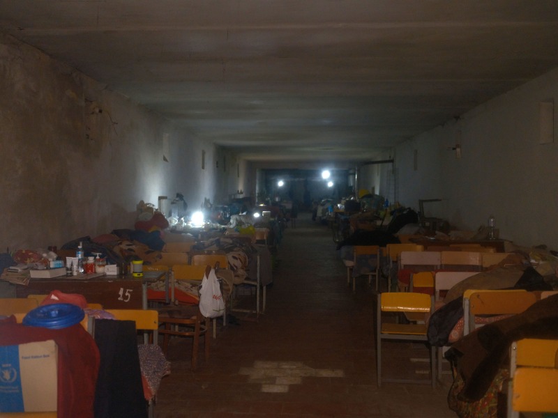 学校に地下にある避難所。ドネツク州ベリカ・ノボシルカ
