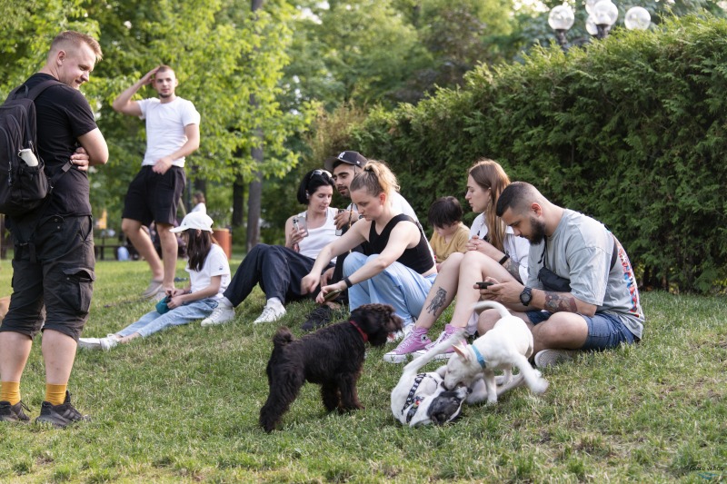 キーウ市内の公園で犬と過ごすウクライナの人々