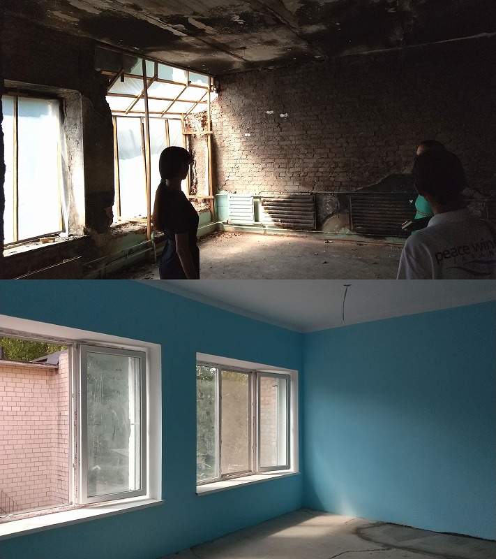 9月、ウクライナの学校では新学期が始まりましたが、学校や幼稚園の中にはロシア軍の攻撃によって建物や設備が大きく破壊され、再開が遅れているところがあります。1日も早く子どもたちが戻ってこられるように、ピースウィンズはふたつの幼稚園の改修を行っています。